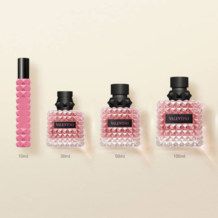 Fragrance Family: Amber Floral Key Notes: Sambac Jasmine, Cashmeran, Vanilla About the Fragrance: Launched in 2019, Valentino Born In Roma Donna Eau de parfum is a women’s perfume inspired by Rome—a place where past and present coexist. The modern ambery fragrance tells a story of self-expression: a celebration of people living life freely while embracing their heritage. It is luxuriously feminine with an edgy touch inspired by Rome’s Street culture today. Fragrance Description: The opulent fragrance opens with notes of one of the most luxurious ingredients in perfumery, jasmine sambac. The intoxicating scent has been an icon of femininity for centuries. The woody scent of cashmeran brings a vibrant heart to the fragrance. An unusually spicy note adds a layer to the multi-faceted note, bringing a lively turn to this sensual note. Finishing notes of vanilla bourbon bring a rich, leathery, smoky aspect. A refined sense of darkness doubled with extreme sensuality, crucial to the intensity of the signature. Its dry down is spicy, carnal, sensual, and distinctive, bringing an irreverent twist to the fragrance . This warm floral scent is perfect for winter and fall but will bring spice to your date nights all year. About the Bottle: The bottle pays tribute to the iconic Valentino Rockstud. This edgy pyramidal design, inspired by Roman architecture, is a house signature of Maison Valentino. The edgy rock-studded bottle is made even more modern thanks to the contrast of black leather with vivid pink. At Valentino, pink is punk, poetic, romantic but also bold and daring. Born in Roma Donna is also offered in a 10ml mini perfume bottle studded with the iconic Valentino Rock stud, in a vibrant pink protective rubber sleeve for travel.