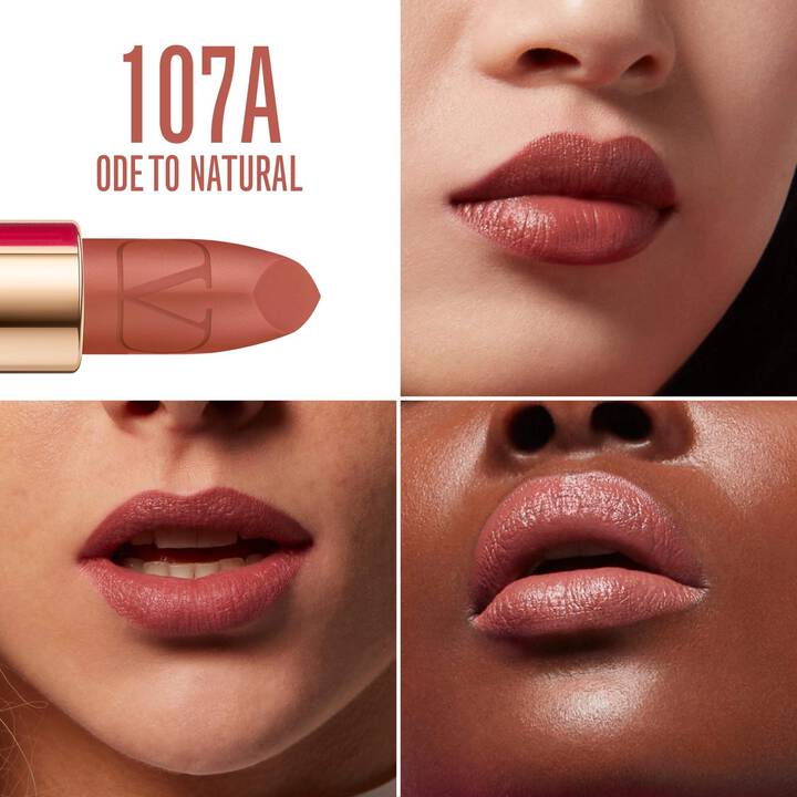 A mini lipstick that delivers striking color to your lips in one stroke. Available in 5 vibrant shades designed to flatter all skintones in two luxurious finishes: a rich, creamy satin and non-drying, soft matte finish. Choose your finish: creamy satin or soft matte. The satin lipstick finish features a new patented technology, that provides intense color pay-off in one stroke, with a light-weight feel. The matte lipstick finish is highly pigmented, long-lasting, and formulated with moisturizing oils to provide an ultra-comfortable, non-drying feel. Available in 6 shades, designed to flatter all skin tones. All colors are infused with signature Roma-Light ComplexTM, crafted with light reflecting, color boosting pearls, for more vivid, highly pigmented color. The signature V-shaped lipstick bullet is the perfect tool to define your lips with precision and control. Personalize your Go-Clutch Compact Powder with the Rosso Valentino Mini Lipstick of your choice for a complete iconic Valentino look. Benefits Highly pigmented Ultra comfortable wear VShaped Lipstick Bullet for precision Choice of two finishes