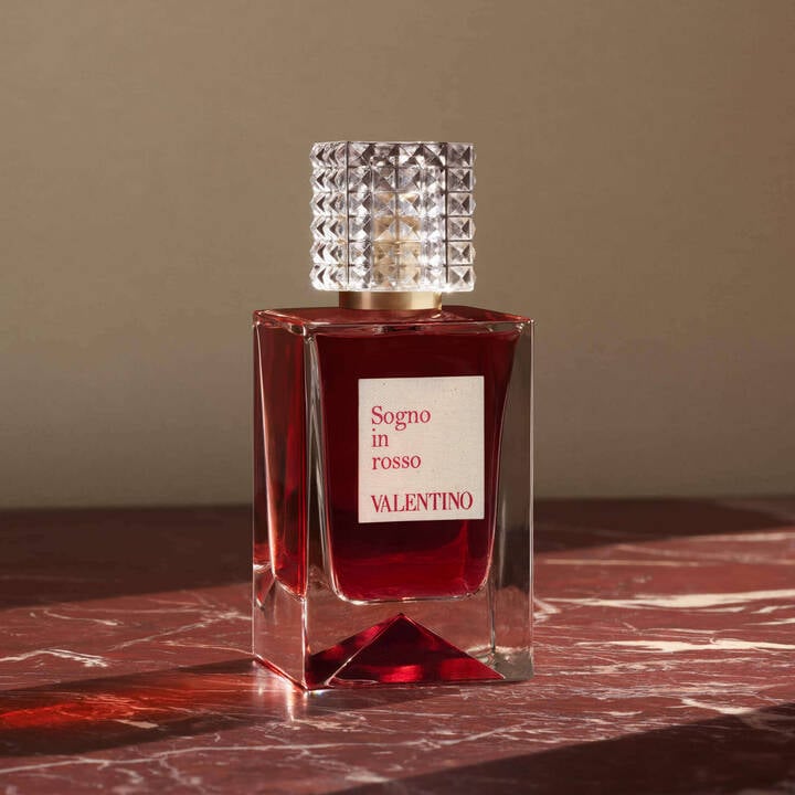 Fragrance Family: Ambery Spicy Key Notes: Black Pepper, Vanilla Bourbon, Italian Milk Foam Accord About the Fragrance: Anatomy of Dreams Collection is a Haute Couture perfume collection on Valentino Beauty for men and women . This unisex perfume collection is inspired by the hedonistic spirit of Rome. Sogno in Rosso Parfum is the collection’s ambery spicy fragrance crafted by perfume Fabrice Pellegrin, where dreams of the Maison have been crafted since 1959. A narration of seven olfactive narratives made of unexpected blends. Sogno in Rosso translates to Dreams in Red, a name that illustrates Valentino’s connection to one of the most passionate, seductive, powerful, and culturally symbolic colors in the world. Fragrance Description: Sogno In Rosso Parfum presents an unexpected but romantic aroma. This ambery and spicy fragrance is a great choice for the Winter and Fall seasons and cool Summer nights. This long-lasting parfum contains Top Notes: Black Pepper Essence, Juniper Berries Essence, Petitgrain Essence, Middle Notes: Incense DM Essence, Orange Blossom Absolute, Italian Milk Foam Accord, Base Notes: Sandalwood Heart, Vanilla Bourbon Premium Infusion Madagascar, Ambergris Accord. About the Bottle: The perfume bottle represents the hedonistic spirit of ancient Rome in glass and light. The rectangular glass bottle Standing the test of time is this rectangular, transparent glass bottle that makes it clear that there is nothing to hide yet everything to discover. The studded glass cap echoes the Maison Valentino’s signature emblem. Each Anatomy of Dreams fragrance finds its name on a canvas fabric.