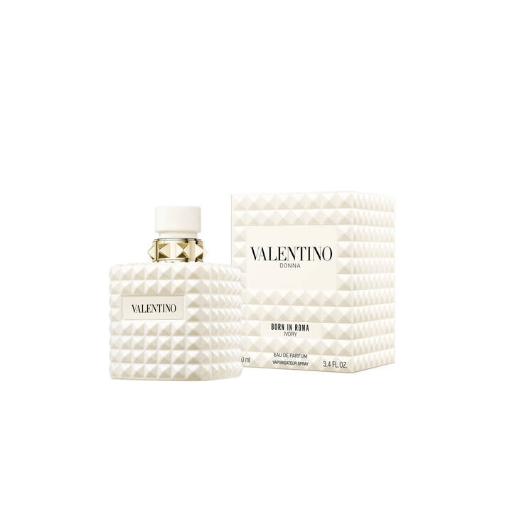 The bottle pays tribute to the iconic Valentino Rockstud. This edgy pyramidal design, inspired by Roman architecture, is a house signature of Maison Valentino. Part of Valentino’s fashion iconography and a symbol of Roma where it embellishes the city’s doors and walls, the Rockstud is a transformative symbol, taking a bag or a shoe from classic to instantly current. Born in Roma Ivory takes the iconic Rockstud as design inspiration.