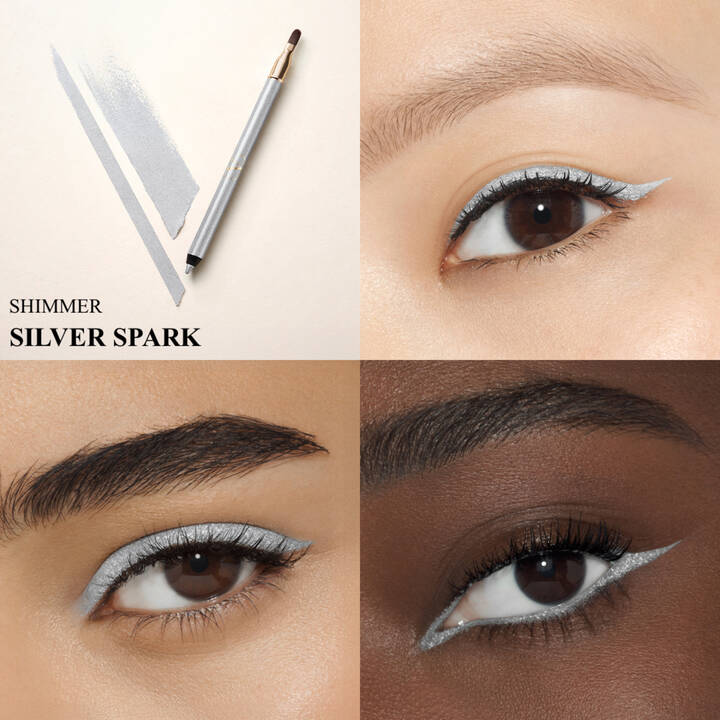 Glide sharp lines or enjoy a quick playtime to softly blend the texture before it sets down. Use it 3 ways: Eyeliner: for a graphic look, use the pencil tip to define the lash line until elongated. Waterline Crayon: for an extra definition, fill-in the waterline and build up the intensity as desired. Eyeshadow: for a sophisticated smokey eye, use the built-in brush to seamlessly blend the color onto the lid.